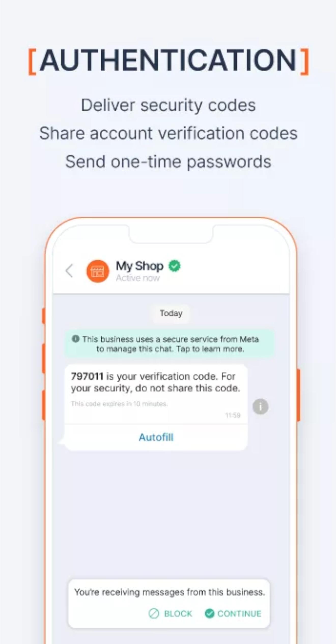 Delivery security codes, share account verification codes, send one-time passwords (OTP)