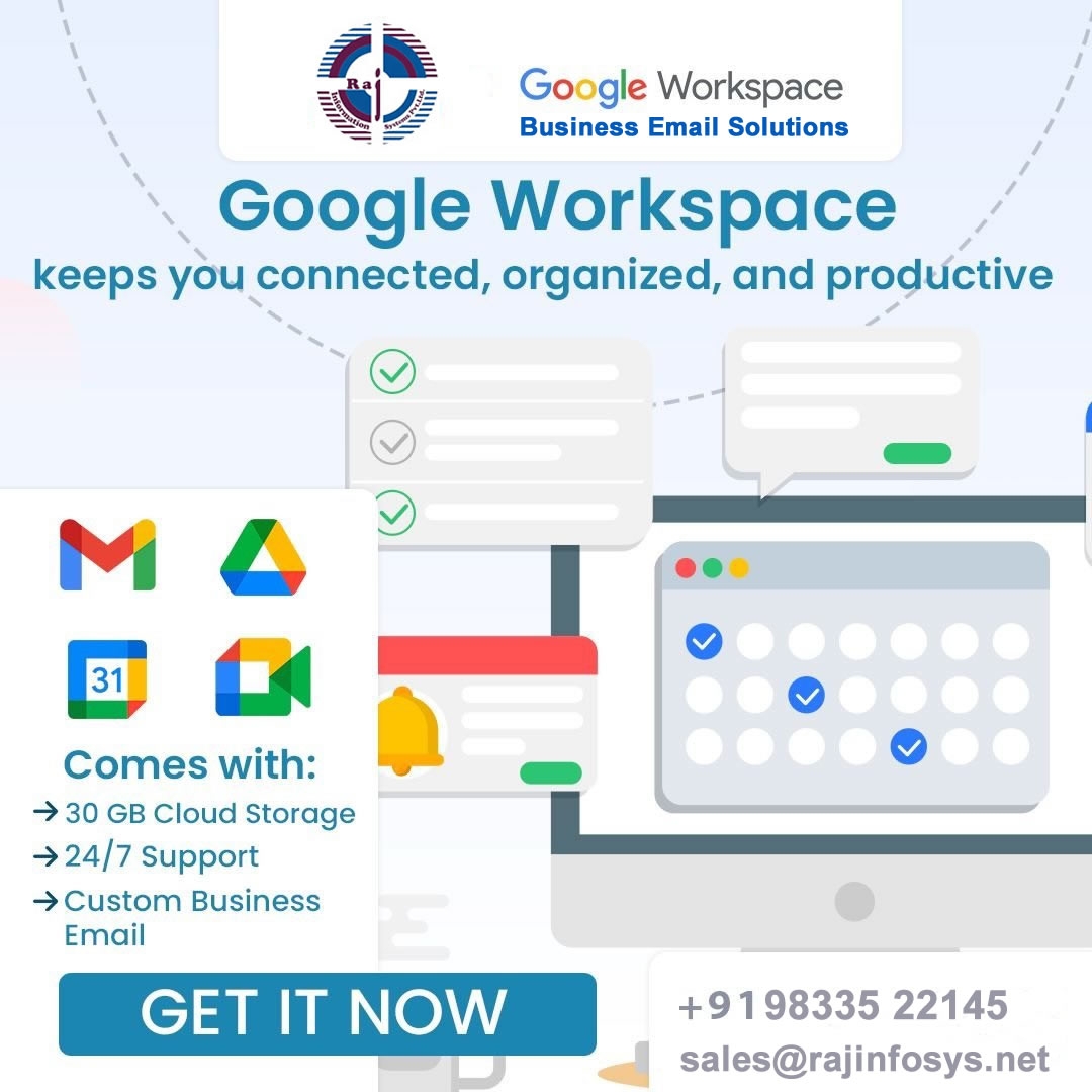 Upgrade your business with Rajinfosys Google Workspace and the power of Gemini. we offer customized solutions to boost efficiency, collaboration, and growth.